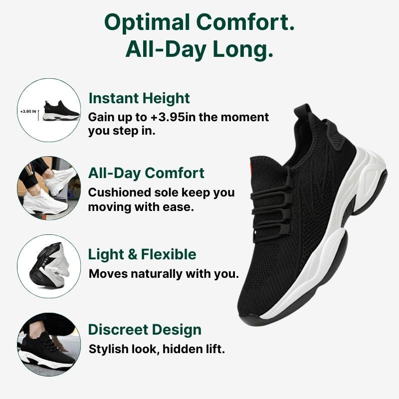 Unlike cheap lifts that hurt after an hour, these sneakers are built for all-day wear. Breathable materials, cushioned soles, and a supportive fit make it easy to go from morning to night without sacrificing comfort. Most guys say they get used to the lift within days, and then it just feels natural.