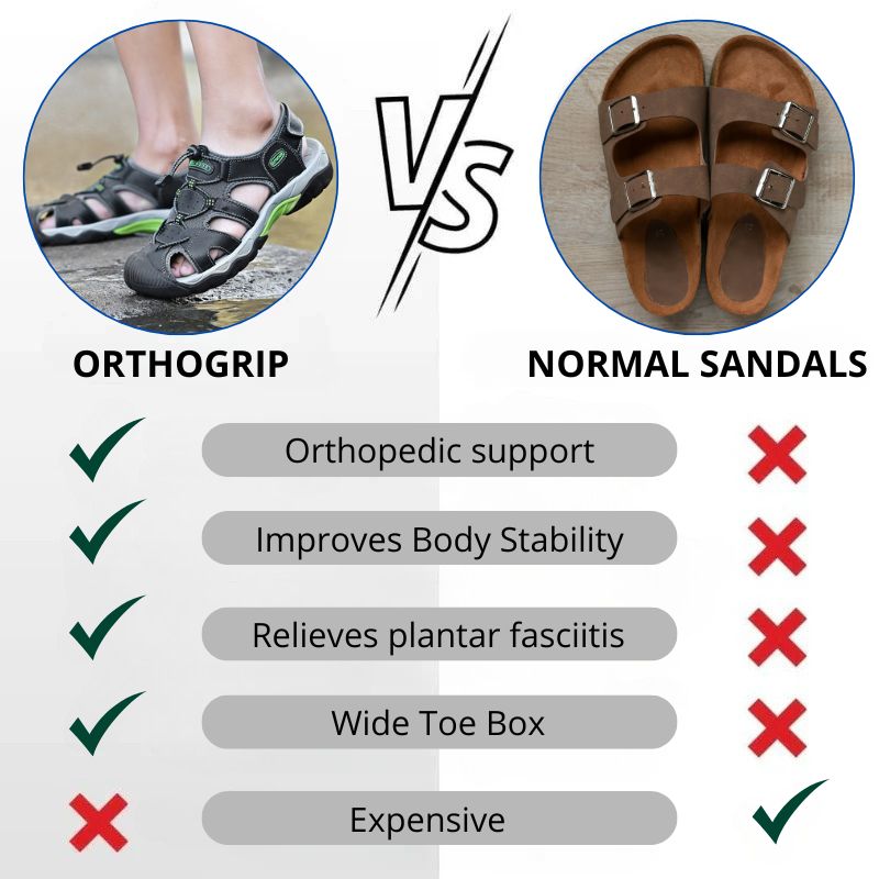 Orthogrip sandals are designed to improve walking comfort, relieve pressure on the joints and support the natural movement of the foot thanks to their shock-absorbing soles.