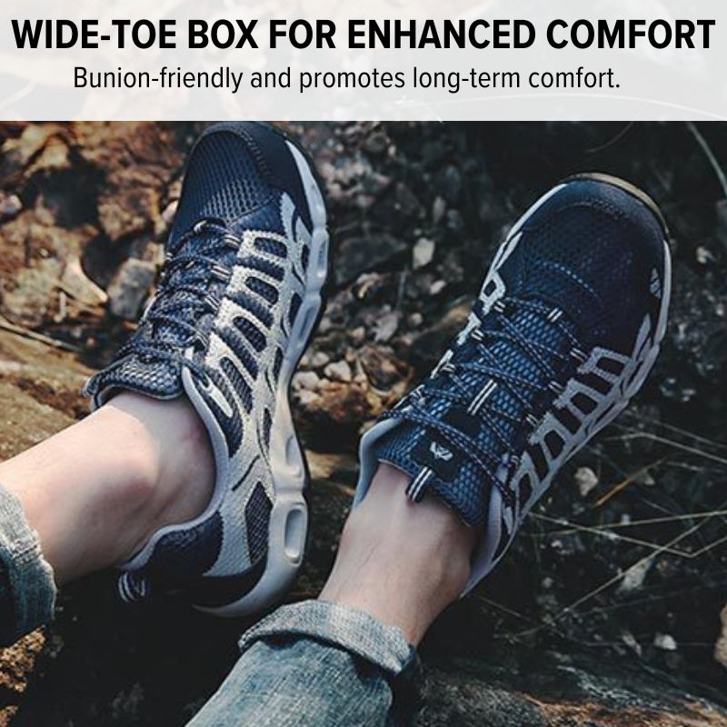 Unlike traditional shoes that compress your toes, its wide toe box prevents friction and instantly relieves pressure.
